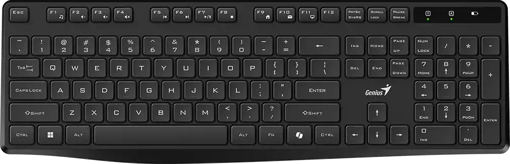 GENIUS KB-7200bezdrátová klávesnice GeniusFunkce:-2.4GHz bezdrátová tenká klávesnice-Tlačítko AI Copilot pro aktivaci asistenta Copilot (pro Windows 11 a vyšší)-Pracovní vzdálenost až 10 metrů-11 kláves pro rychlý přístup-Varování o nízké baterii-Bez nutnosti instalace; plug and playSpecifikace:Rozhraní-2.4 GHzTyp klávesy-Čokoládová klávesaKlávesa pro spánek-NeKalkulačka-NeFunkční klávesy-Ano, 11 (8 pro audio, 3 pro internet)Multimediální klávesy-NeOdolnost proti rozlití-NeOpěrka pro dlaně-NeTyp baterie-AAA
