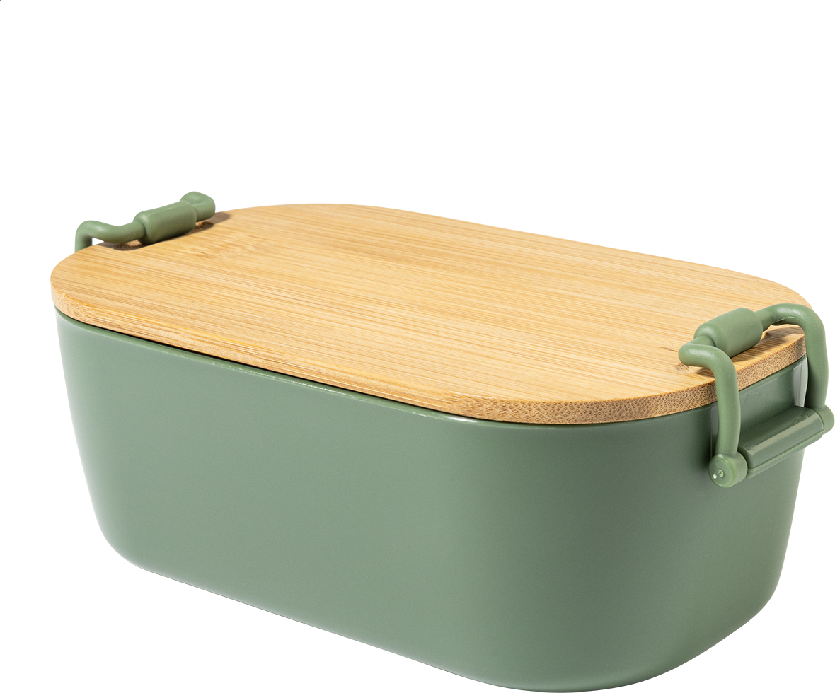 Box na jídlo z PP plastu s bambusovým víkem a uzávěrem na přezku, 1000 ml.