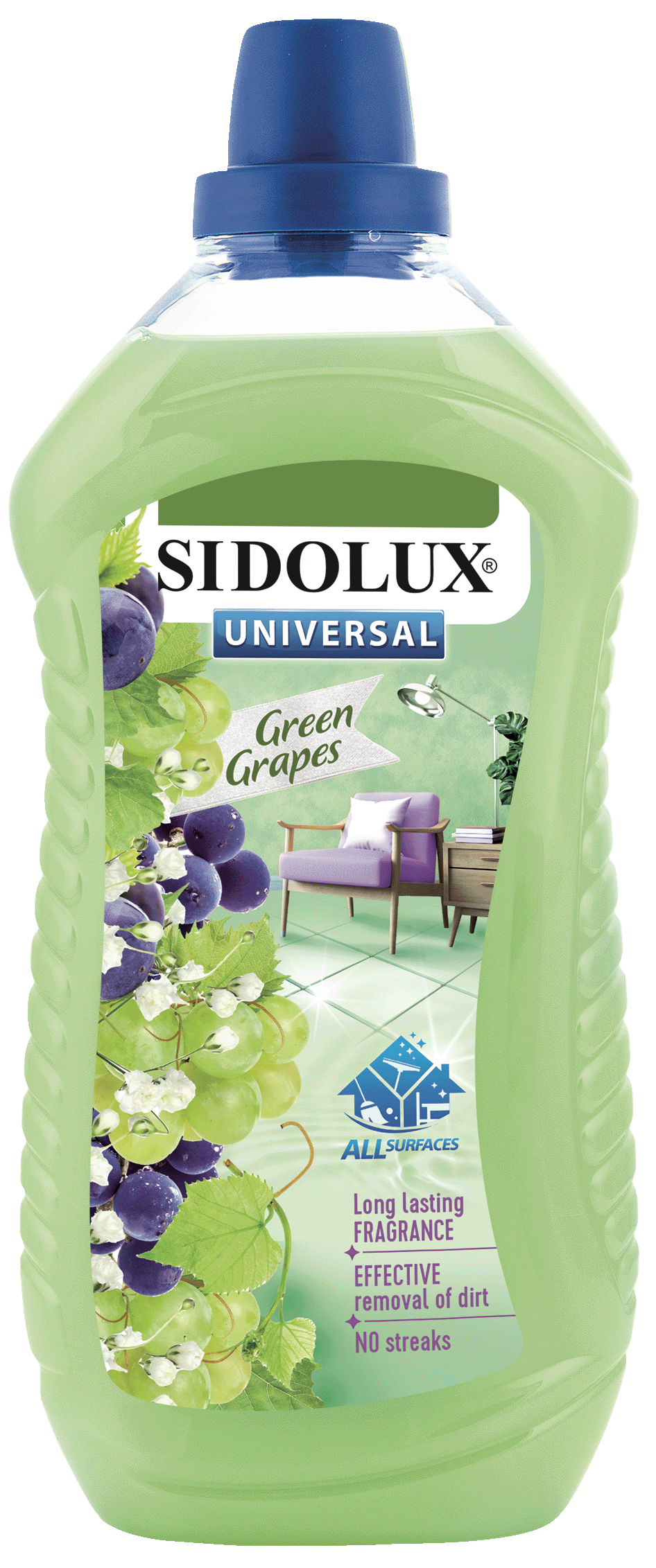 Univerzální čistič na všechny omyvatelné povrchy se svěží vůní zelených hroznů Univerzální čistič na všechny omyvatelné povrchy se svěží vůní zelených hroznů a unikátním složením Soda Power - zajišťuje účinné odstranění špíny. - umyje nečistoty, odmastí i povrchy- díky přidané sodě ( Soda Power) změkčí vodu a podpoří čistící účinky čistícího prostředku- otřete či vytírejte co je potřeba- na desky, rámy oken, stoly, pulty- příjemná dlouhotrvající vůně- vůně hroznů evokuje léto slunce