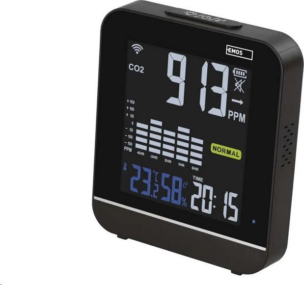 ????️ EMOS E30300 GoSmart - chytrý Wi-Fi hlídač kvality vzduchu ve vaší domácnosti EMOS E30300 GoSmart je moderní měřič kvality vzduchu s Wi-Fi připojením, který monitoruje hladinu CO₂, teplotu a vlhkost v místnosti – v reálném čase a s barevným zobrazením. Pomáhá předcházet únavě, ospalosti i zdravotním komplikacím způsobeným vydýchaným vzduchem. Barevná LED animace a notifikace vás včas upozorní, pokud je čas vyvětrat. Ve spojení s aplikací EMOS GoSmart navíc získáte přístup k historickým grafům, upozorněním a automatizaci chytré domácnosti. ???? Přehledné informace, chytré funkce Díky velkému barevnému displeji s trvalým podsvícením vidíte stav ovzduší hned na první pohled. Kromě CO₂ měří i teplotu a vlhkost, zobrazuje aktuální čas a funguje i jako budík. Pomocí aplikace EMOS GoSmart (Android/iOS) máte přístup k minimálním a maximálním hodnotám a dalším užitečným funkcím. Zónové barevné indikace kvality CO₂ (např. zelená = dobrý vzduch, červená = nutnost větrání) zajistí, že vždy víte, co dýcháte. ???? Ideální pro domácnosti i kanceláře Měřič vzduchu EMOS E30300 se hodí do obývacích pokojů, dětských pokojů, ložnic, ale také do škol, kanceláří nebo zasedacích místností. Elegantní design a stojánek umožňují jeho umístění na stůl, polici nebo parapet bez rušení interiéru. ???? Automatizace chytré domácnosti Zařízení lze snadno připojit k vaší Wi-Fi síti a aplikaci EMOS GoSmart, TUYA, Smartlife nebo LIDL Home. Na základě naměřených hodnot lze automaticky spouštět např. ventilátor, klimatizaci nebo zvlhčovač, čímž se zcela automatizuje péče o zdravé prostředí. Např. při překročení CO₂ > 1000 ppm se může automaticky zapnout ventilace – bez vaší účasti. ???? Bezpečný provoz i při výpadku proudu Napájení probíhá přes USB-C kabel (součást balení), ale díky vestavěné záložní baterii funguje i po dobu až 4 hodin bez připojení do sítě, což oceníte zejména při výpadcích elektřiny. ???? Technické specifikace Zobrazení hodnot: CO₂, teplota, vlhkost, čas, barevná animace stavu ovzduší Umožňuje okamžité vyhodnocení kvality prostředí. Rozsah měření CO₂: 400 až 5 000 ppm Vhodné pro běžné domácnosti, kanceláře i učebny. Vnitřní teplota: 0 až +50 °C (rozlišení 0,1 °C) Vnitřní vlhkost: 20 až 90 % RV (rozlišení 1 %) Zobrazení hodin: formát 12/24 h, funkce budíku Ovládání a monitoring: aplikace EMOS GoSmart (Android/iOS) Notifikace: upozornění při překročení CO₂ do mobilu Kompatibilita systémů: GoSmart, TUYA, LIDL, Smartlife Protokol a frekvence: Wi-Fi 2,4 GHz Ovládání hlasem: nepodporuje hlasové asistenty Displej: barevný, 73 × 82 mm, trvale podsvícený Napájení: 5 V / 1 A, přes USB-C (adaptér není součástí balení) Záložní baterie: ano, výdrž až 4 hodiny Rozměry přístroje: 108 × 126 × 40 mm Instalace: volně stojící (není určen k zavěšení na zeď) Jazyky aplikace: čeština, slovenština, polština, němčina, angličtina, francouzština + 60 dalších Obsah balení: přístroj, USB-C kabel 1 m, CZ návod Záruka: 2 roky