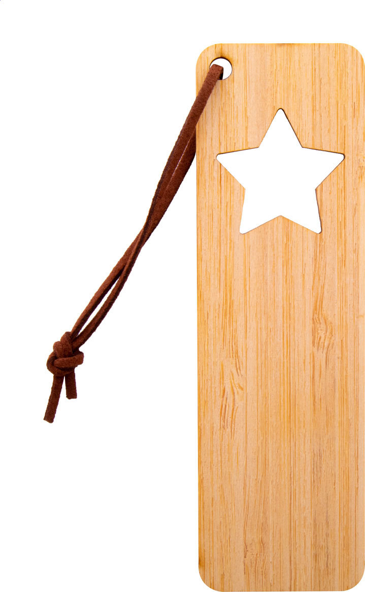 Bambusová záložka do knihy s vyřezaným vánočním motivem a poutkem z PU kůže.