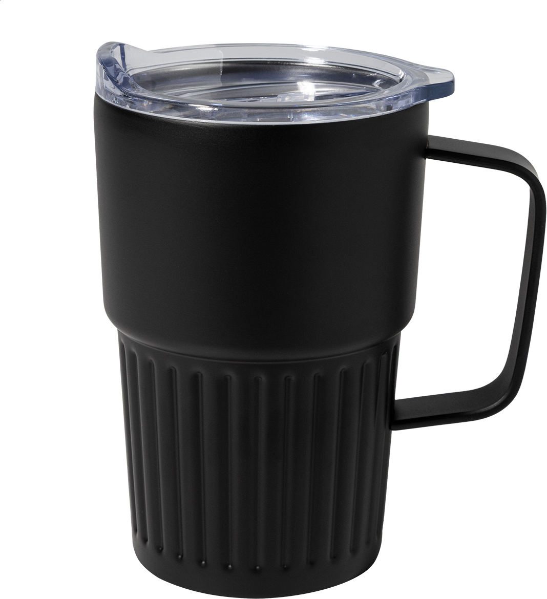 Dvoustěnný termo hrnek z recyklované nerezové oceli s víčkem na pití z ABS plastu. 470 ml.