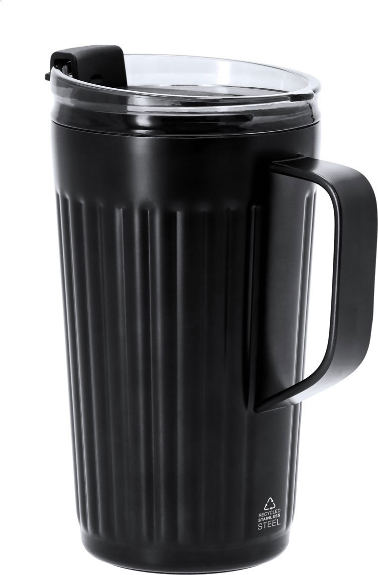 Dvoustěnný termo hrnek z recyklované nerezové oceli s víčkem na pití, 350 ml.