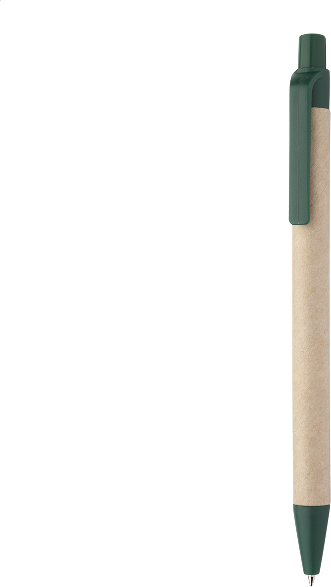 Recyklovatelné papírové kuličkové pero s modrou náplní.