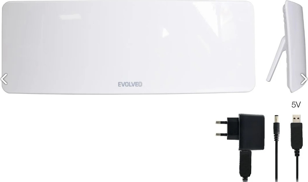 Popis produktuElegantní pokojová anténa pro příjem digitální i analogové TV. Zesilovač antény lze napájet díky USB kabelu dvěma způsoby. Napájení pomocí adaptéru 220V a dále napájení z USB konektoru. Druhý způsob ocení uživatel, který chce sledovat TV např. na NB pomocí USB tuneru. Podstavec je odnímatelný a anténu tak lze uchytit i např. na zeď.Specifikace:• zisk: 50 dBi• LTE filter• VHF: 174-230MHz (T-DAB a DVB-T/T2)• UHF 470-790 MHz (DVB-T/T2)• napájení AV 220-240V, DC 5V/550mA • konektory: •• Anténa: F female•• kabel: F male/IEC male•• zesilovač IEC F female/ IEC F male•• redukce: IEC female/F male• barva: bílá• délka kabelu: 150mm• velikost: 331šířka x 120 výška x64 mm hloubka¨Obsah balení:• anténa• odnímatelný držák • adaptér 220V s odnímatelným USB kabelem• redukce z IEC na F konektor• návod