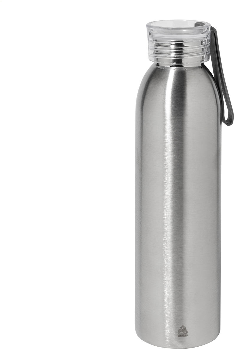 Láhev z recyklované nerezové oceli s PP víčkem a silikonovým poutkem, 600 ml.