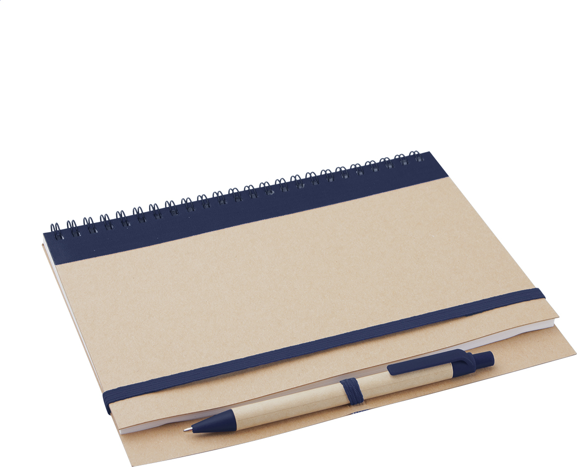 Nelinkovaný blok z recyklovaného papíru, se 60 listy a s papírovým kuličkovým perem.